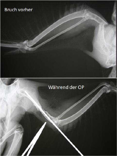 Die Stockente wurde nach einem Zusammenstoß mit einem Auto aufgesammelt und zu einer Vogelfreundin gebracht. Diese ist eine langjährige Kundin von mir und weiß, dass ich ebenfalls ein großer Vogelliebhaber bin. Die Vogelfreundin unterstützt die Praxis seit vielen Jahren bei der Pflege und Auswilderung von Wildvögeln, für sie kam eine Euthanasie nicht infrage. Ich sollte versuchen, den Ruderfuß der Ente zu retten, was glücklicher Weise auch gelang. Wir hoffen nun, dass sich die Stockente rasch erholt.