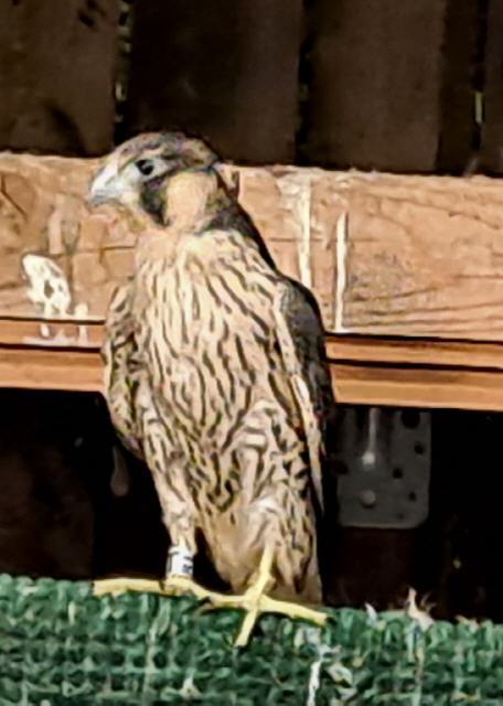 Aus dem Gelege der Wanderfalken am Tower des Nürnberger Flughafens waren drei Jungtiere geschlüpft - ein Weibchen und zwei Männchen. Am 27. April wurden sie beringt und entwickelten sich prächtig. Doch am 4. Mai erreichte mich eine traurige Nachricht: Die Flughafenfeuerwehr hatte einen verletzten adulten Falken aufgenommen. Noch ahnte ich nicht, dass es sich um das Weibchen des Paares handelte. Als ich am Flughafen ankam und den verletzten Vogel sah, hatte ich jedoch Gewissheit.