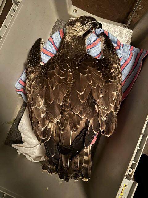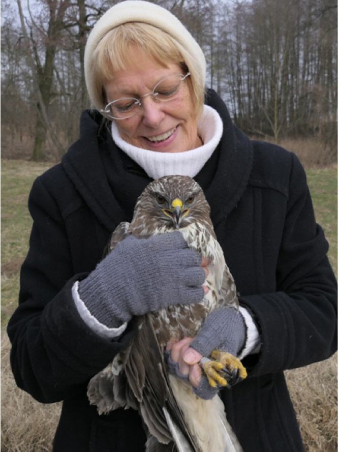 Mäusebussard darf nach erfolgter Reha von der Finderin wieder freigelassen werden.
