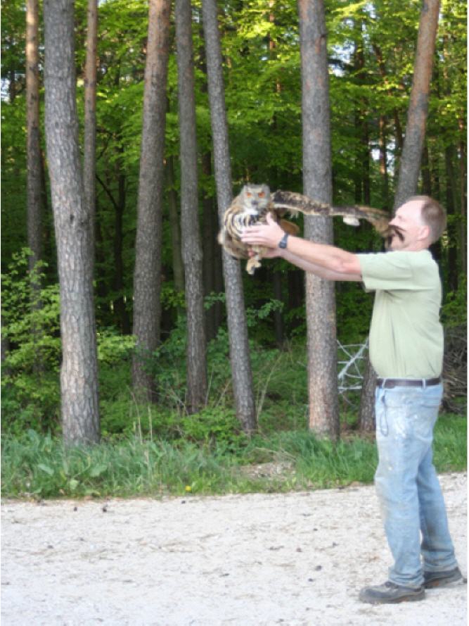 Jungvögel verschiedenster Arten werden in der Auffang- und Pflegestation Hussong in Fürth aufgenommen, artgerecht aufgezogen und mit falknerischen Methoden wieder ausgewildert.