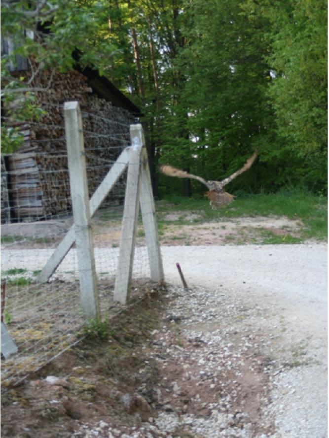 Am 14.3. wurde er in eine Volière der Auffangstation verbracht, wo er täglich drei Eintagsküken atzte und sich dabei sichtlich erholte. Er reagierte nun ganz natürlich mit Flucht, wenn er mich sah und flog tatellos in der Volière.