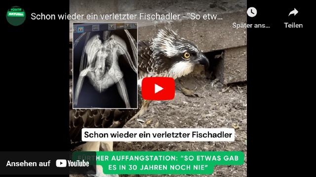 In Fürth sorgt ein ungewöhnlicher Zufall für Aufsehen. Rainer Hussong, Tierarzt und Betreiber der Auffangstation für Greifvögel in Fürth Oberfürberg, hat innerhalb nur einer Woche gleich zwei verletzte Fischadler aufnehmen müssen. Diese Vögel, die in Bayern eher selten anzutreffen sind, haben sich beide verletzt – einer davon schwer – und wurden in Hussongs Station in Obhut genommen. „So etwas habe ich in den letzten dreißig Jahren noch nie erlebt“, sagt Hussong, der seit Jahrzehnten verletzte Greifvögel versorgt und wieder in die Natur entlässt. Über den ersten Fall hatten wir bereits vor einer Woche berichtet. Wir haben die Auffangstation besucht und uns nach den Fischadlern erkundigt (Video).